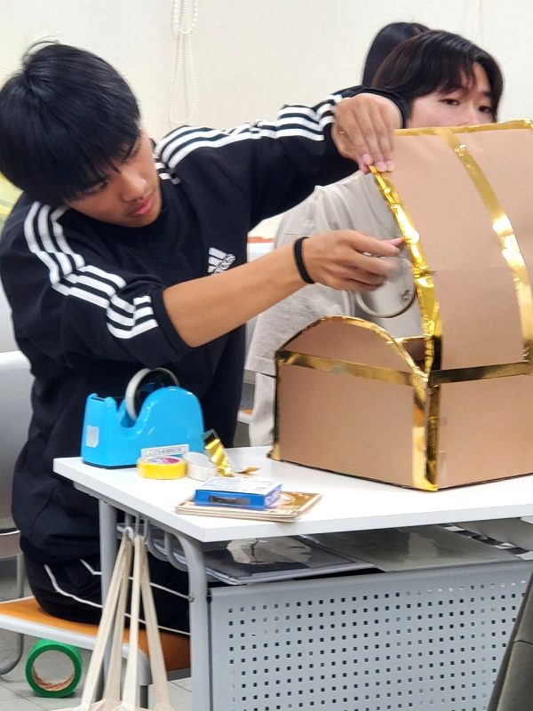 友だちと会話を楽しみながら、実習準備を頑張っていました✂️