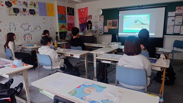 授業の締めくくりには、実際に子どもたちが作った作品も鑑賞しました。