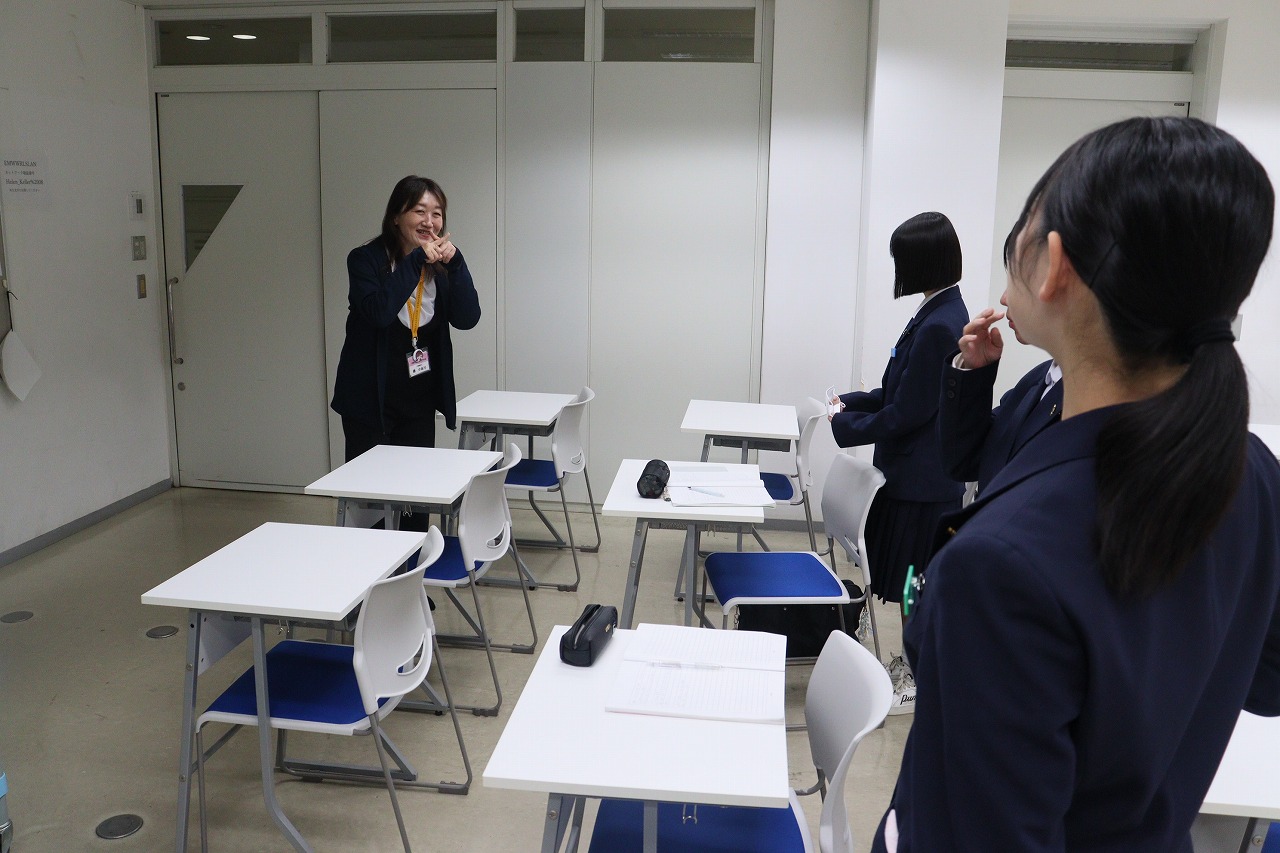 体験では表情や言葉で相手に伝えるゲームを・・・