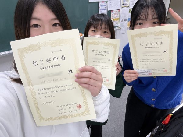 【社会福祉メディカルソーシャル科】介護職員初任者研修、修了!