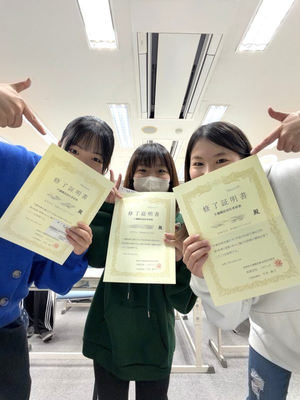 1年生が取り組んできた介護職員初任者研修が、このたび無事に修了しました!✨