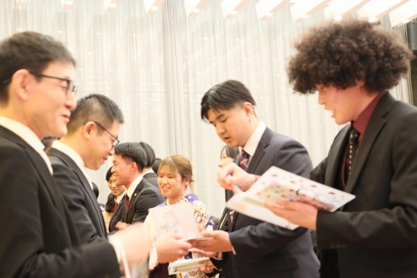 会場は、色鮮やかな袴や振袖に身を包んだ女子学生と、ビシッとスーツを着こなした男子学生たちでいっぱい。