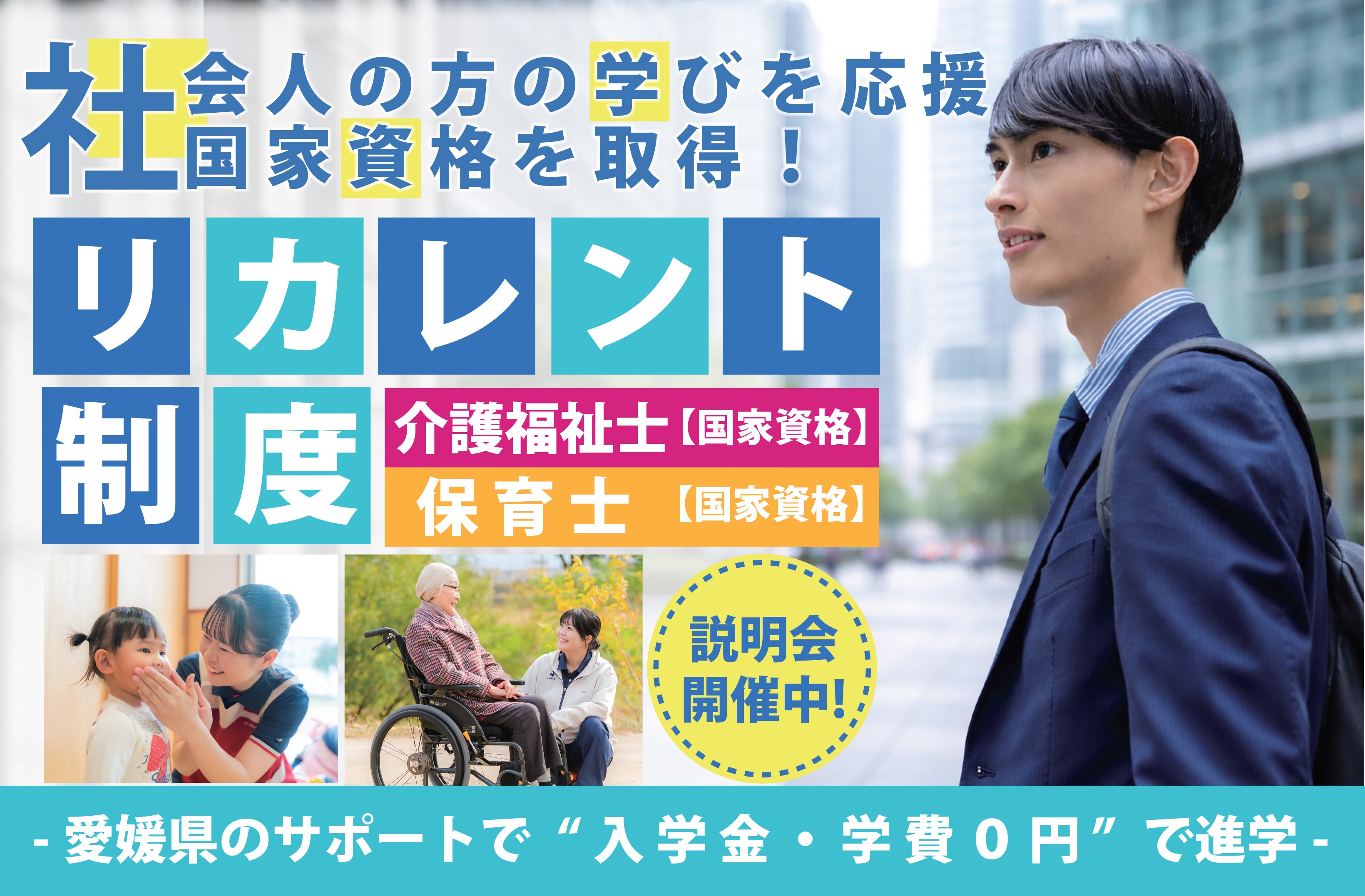 入学金・学費無料で「介護福祉士」「保育士」国家資格取得を目指す!